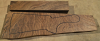 Die ersten Aufnahmen entstanden auf einem leicht angefeuchteten Holzbrett, um die Farben und die Schönheit des fertigen Produkts realistischer darzustellen. Das letzte Bild zeigt die Maße in Zentimetern. Die Konturen wurden auf die tatsächlichen Abmessungen der Blaser F3 übertragen. Die Teile wurden fünf Jahre lang luftgetrocknet. Auf Dampftrocknung wurde verzichtet, um die Farben und die natürlichen Harze des Holzes zu erhalten. Das Ergebnis ist ein elastischerer, festerer und schönerer Schaft