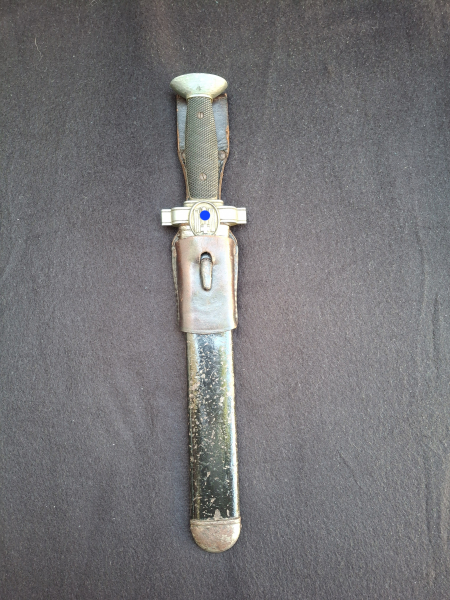Der Haken an der Scheide, der in den Koppelschuh gesteckt wird, ist beweglich.