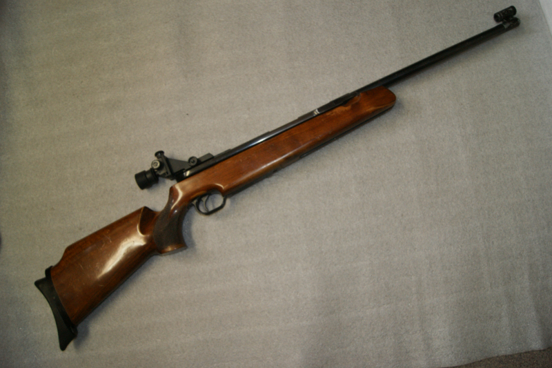 Angeboten wird aus Nachlaß eines Schützenkollegen ein Luftgewehr Feinwerkbau 150. Rechtsschaft, Seriennummer 26568, Baujahr 1967, Blechkorn 4,2 mm, Laufmantel, "F"-Kennzeichnung vermutlich nachträglich von Büchsenmacher? gemacht, verstellbare Schaftkappevon FWB 300. Zustand siehe Bilder. Schaft mit Kratzer und Dellen, Riss am Hinterschaft unten am Ende von Befestigung der Schaftkappe, keine Brüche. System abgegriffen mit blanken Stellen. Technisch in Ordnung, Geschwindigkeit 170 m/s plus. Altersnachweis 18 Jahre erforderlich. Privatverkauf ohne Garantie oder Gewährleistung. VERSAND NUR IN DEUTSCHLAND !!!!! Bei Sofortkauf ohne Versandkosten!