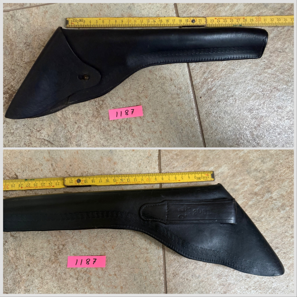In dieser Zeit wurden die Holster der Firma Iver Johnson in Boston USA gefertigt. Für welche Waffe das Holster passt, weiß ich leider nicht. Es ist sehr schlank und könnte für einen Colt Vorderlader Revolver passen, aber das ist nur eine Vermutung. Ein Colt SAA passt auf jeden Fall nicht. Das Holster befindet sich in einem guten Zustand mit Gebrauchsspuren, die Nähte sind fest.