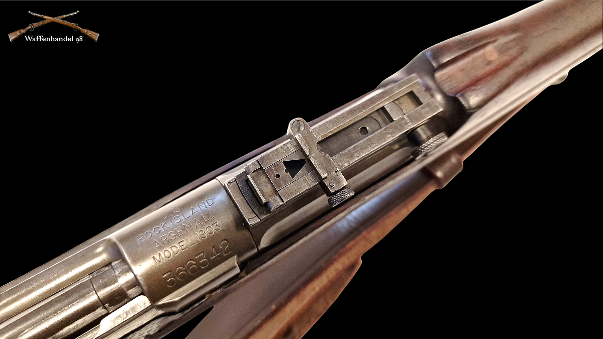 Die M1903-Fertigung endete bei der R.I.A. bei Seriennummer 346.779; die darüber hinaus produzierten Systeme bis Seriennummer 430.742 wurden eingelagert und später übernommen. Die R.I.A. stellte von Juni 1919 bis Juli 1922 ausschließlich Läufe und Kleinteile als Ersatzteilvorrat her. Der Lauf dieses Gewehrs stammt ebenfalls aus R.I.A.-Fertigung und datiert auf April 1922.