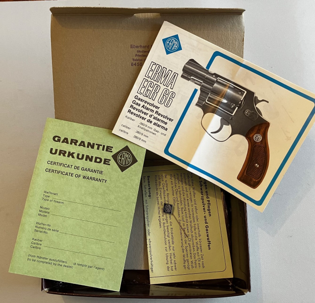 Originaler Karton Erma EGR 66. Stempel des ehem. Besitzers im Deckel und Beschriftung -siehe Fotos- Privatverkauf!