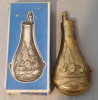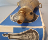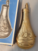 Verkaufe aus Familien Nachlass eine Pulverflasche mit karton, wohl unbenuntzt Messing mit Artillerie Motiv Made in Italy.