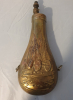 Verkaufe aus Familien Nachlass eine gebrauchte Pulverflasche Messing mit Artillerie Motiv Made in Italy.