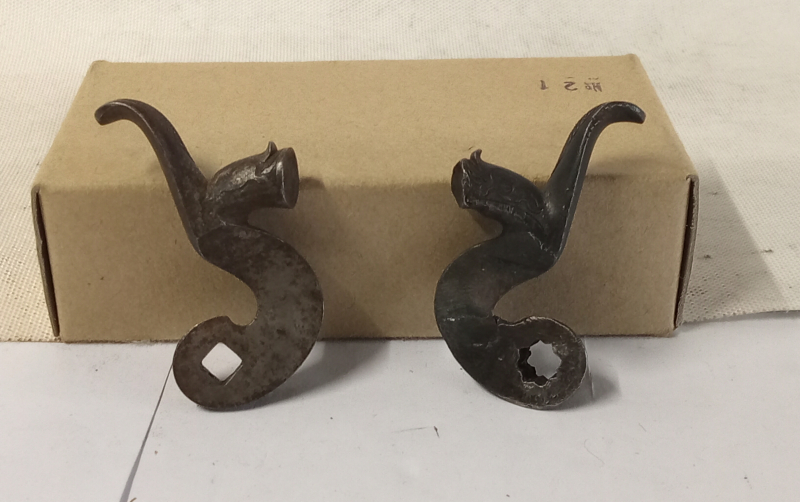 1 Paar Perkussionshähne, schön graviert und fassioniert, Abstand Mitte Vierkant - Mitte Piston ca. 38mm, der rechte Hahn mit "Polygon - Vierkant". Privatverkauf, daher keine Garantie oder Gewährleistung, what You see is what You get....