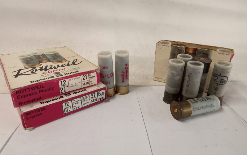 Munition 12er Posten:22 St. Rottweil Express 12/67,5,SSSG /27Schrote,11St.FN Legia 12\65,12 Schrote.. Privatverkauf, daher keine Garantie oder Gewährleistung, what You see is what You get...