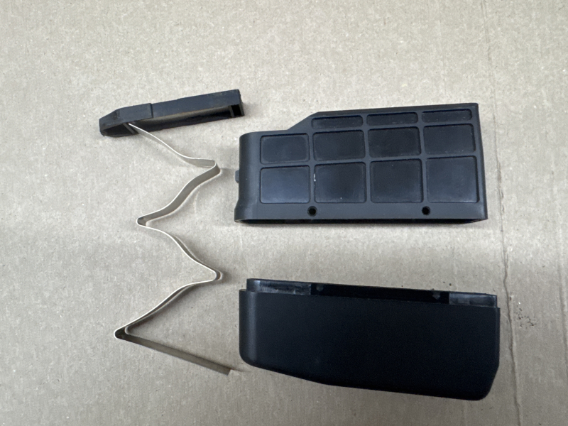 Man kann aber den Magazinboden, Feder und Zubringer benutzen, um aus einem regulären kleinen Maga eines mit großer Kapazität zu machen.