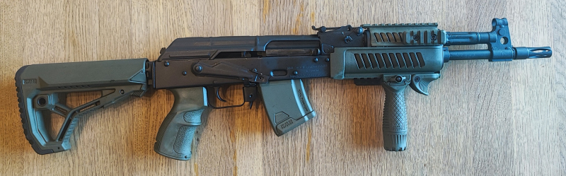 Halbautomatische Büchse von Cugir, Mod. WS1-36, Kaliber 7,62 x 39 mm, Lauflänge: 322 mm, 1 Magazin (10 Schuß), verstellbarer Hinterschaft, Frontgriff, sehr geringe Schußbelastung.