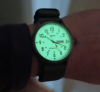 Das eine Foto zeigt die Uhr, nachdem sie kurz mit einer Lampe angestrahlt wurde.