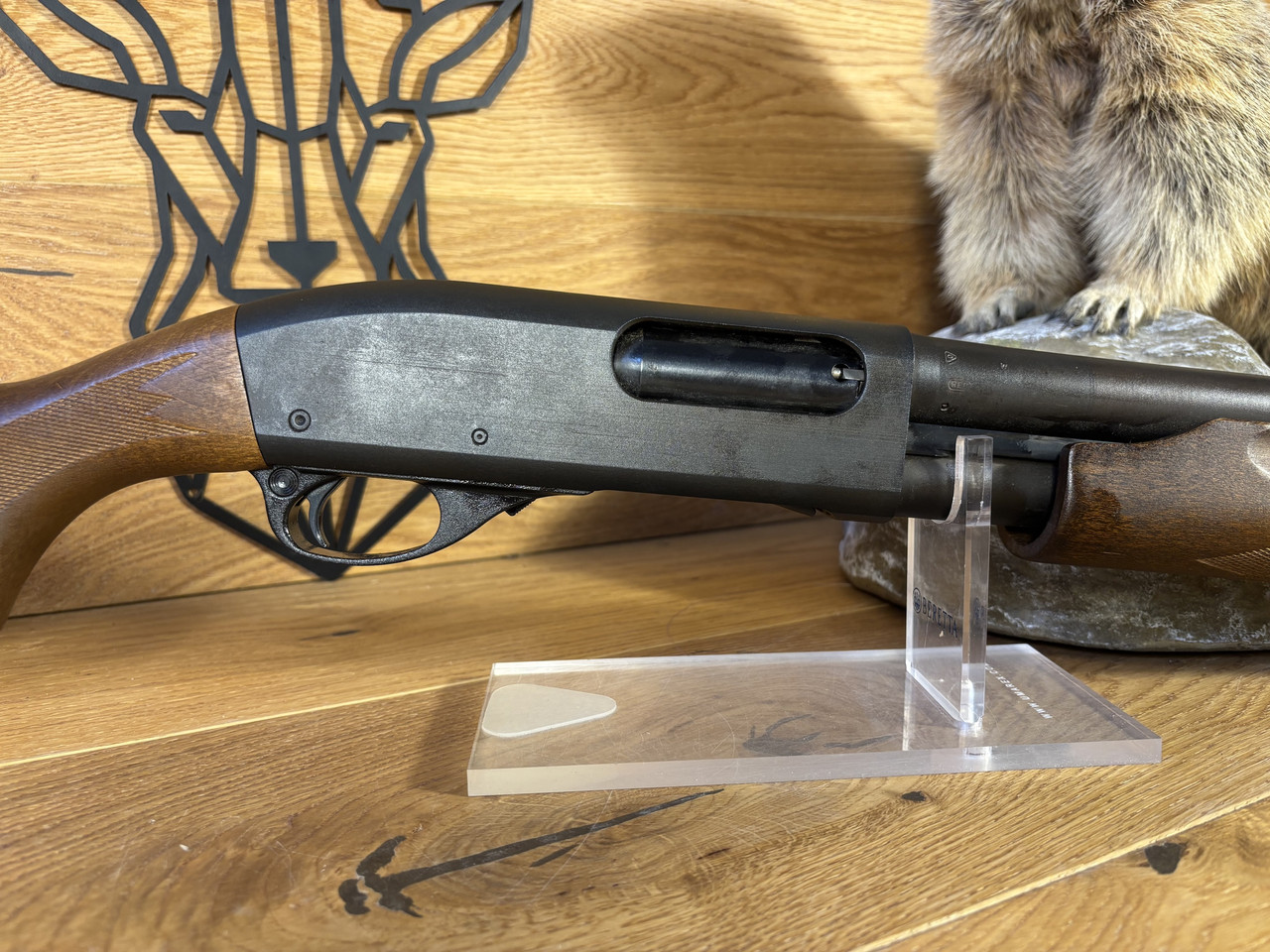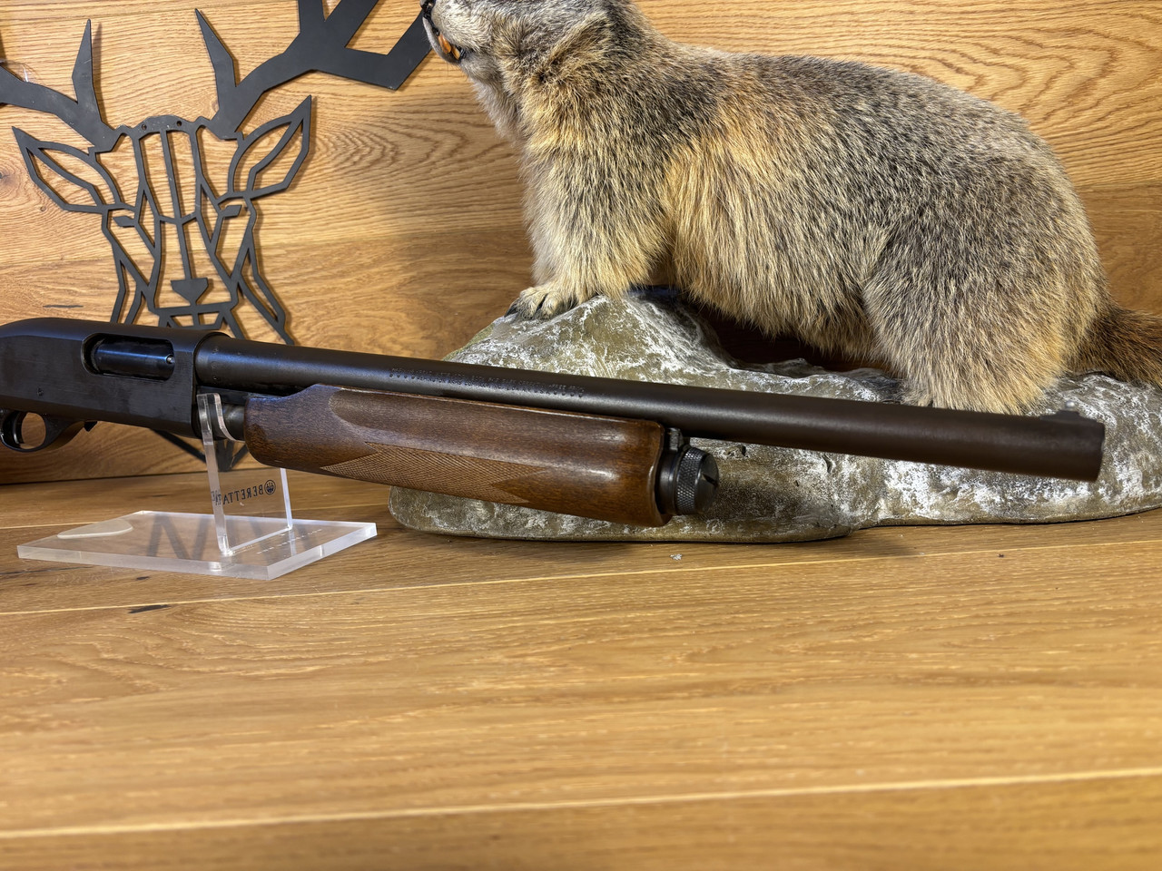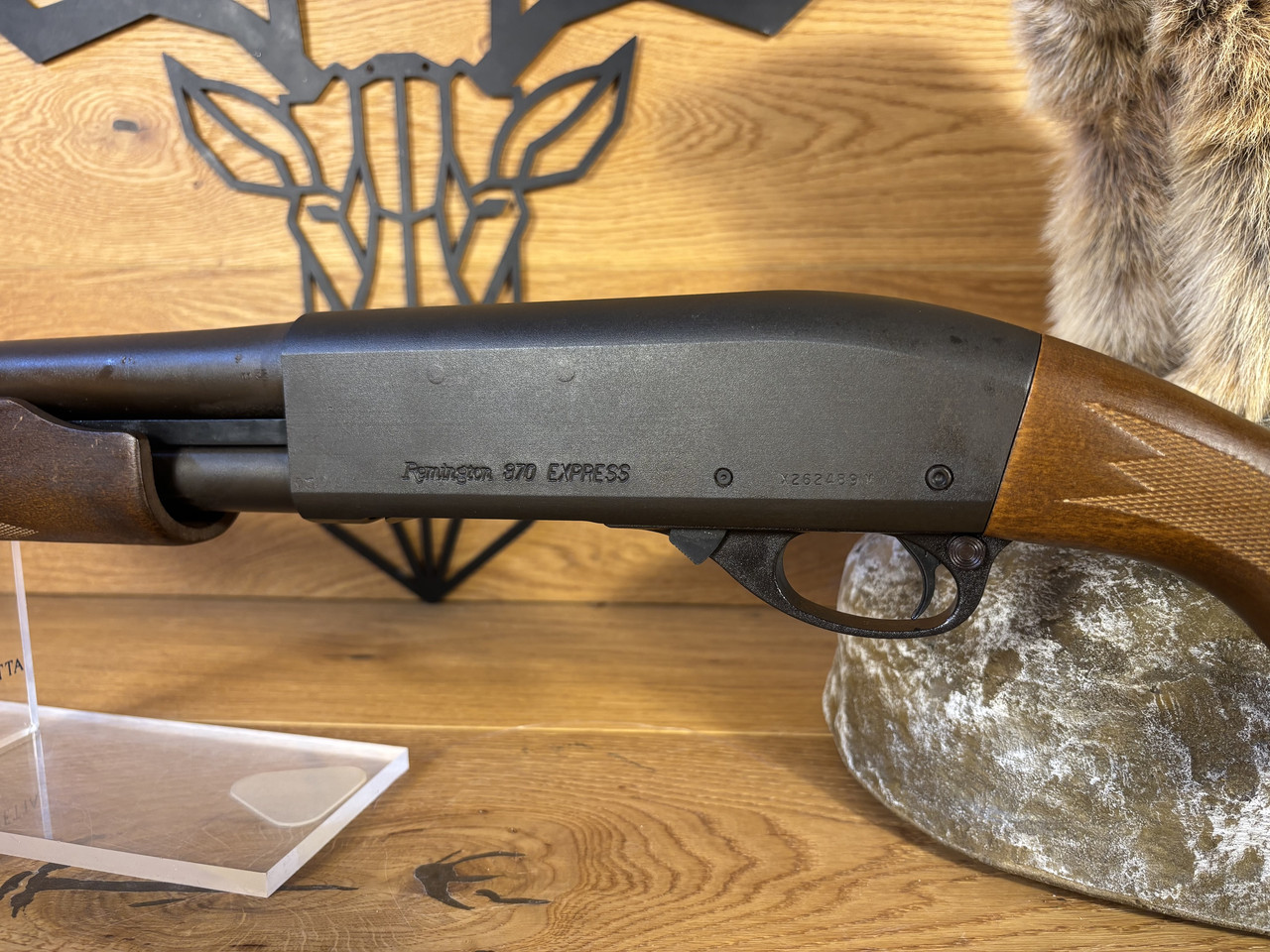 Kaliber: 12/76 Model: 870 Express Magnum Schaft: Holz Lauflänge: 45cm Schaftlänge: 35,5cm Lauf ist blank und ohne Rostspuren. Der Schaft hat lediglich leichte Führspuren und das System ist frei von Rost.