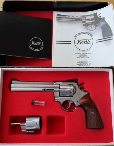 Rarität für Sammler: die stahlgewordene Präzision Korth Revolver 6" .357 Mag. Wechseltrommel 9mmLuge