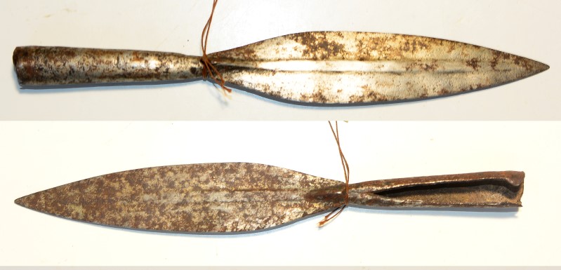 Spitze von afrikanischem Speer, Klingenlänge 12cm, Gesamtlänge 18,3 cm, teils flugrostig aber ohne Narben