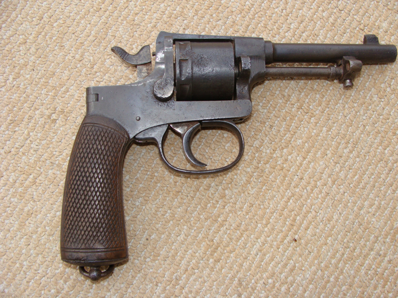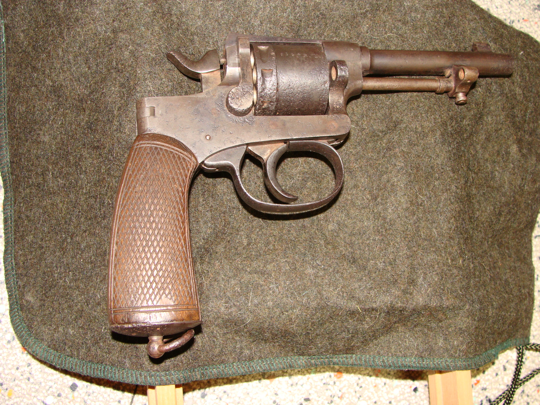 Kaliber 8x27 (als "unbrauchbar" seit 1998 aus Waffenregister abgemeldet). Wurde von mir nur aus Interesse gesammelt. Revolvertrommel konstruktionsbedingt nicht ausklappbar. Ladung durch Einzelladung hinter Ladeklappe rechts. Der Zustand ist altersmässig, siehe Fotos. Das Sammlerstück wurde vor mehr als 50 Jahren auf einem Waffenmarkt erworben und kann besichtigt werden. Keine EWB erforderlich.