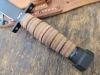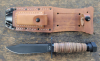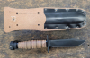 Ontario 499 Pilotenmesser (auch Jetpilot Knife / Air Crew Survival Knife / Air Force Survival Knife) in der aktuellsten Version der Ontario Knife Company. Das Messer wurde ab 1958 für fliegendes Personal der US-Streitkräfte eingeführt und u.a. in Vietnam auch von den Landstreitkräften (Army, USMC, Special Forces) eingesetzt. Klingenlänge: 12,5 cm, Klingenstärke 4 mm, Säge auf Klingenrücken, massiver sechseckiger Stahlknauf, Gesamtlänge: 25,5 cm, Stahl: 1095 Kohlenstoffstahl, Stahlteile mattschwarz oxidbeschichtet, Griff aus braunen gepressten Lederringen, Gewicht (Messer): 190 g, braune Lederscheide mit aufgesetzter Tasche und Durchstechschutz auf der Unter- und Rückseite, 8 gestanzte Löcher im Leder, um die Scheide mit Kordeln/Paracord auf unterschiedlichste Arten zu befestigen, Gürtelschlaufe. Handschutz (Guard/Knebel) mit 2 Bohrungen, um das Messer ggf. als Speerspitze an einem Stock zu fixieren. Beschriftung: „Made in USA“ (Klinge, rechts) und „OKC 1889 Ontario Knife Co.“ Lieferumfang: Messer, Lederscheide, Originalverpackung, Produktkärtchen. Da Neuware keine Beschädigungen/Defekte/Mängel. Da Privatverkauf keine Garantie / kein Umtausch. Versand als versichertes DHL-Paket.