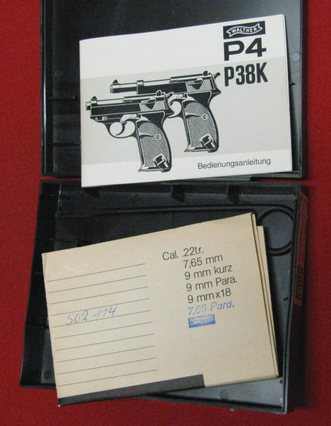Zum Verkauf kommt eine leere, SUPER RARE, WALTHER Schachtel für WALTHER P38K mit Bedienunsanleitung und Anschußscheibe