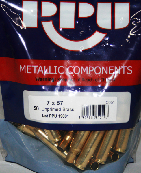 50 Stück > NEUE PPU / PrviPartizan Langwaffenhülsen 7x57 / 7 x 57 Boxerzündung Unprimed Brass #C051