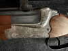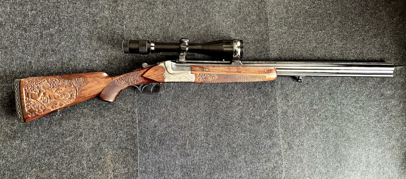 Zum Verkauf steht eine sehr hochwertige Merkel Bockbüchsflinte aus traditioneller Suhler Fertigung –Beschuss Suhl 07/1991. Ausstattung in der gehobenen Ausführung: Ejektoren, Stecherabzug, Suhler Einhakmontage sowie Spiegelblankläufe mit 65 cm Lauflänge. Die Basküle wurde von H. Reinhardt (Suhl) in Handgravur mit traditionellen Jagdmotiven und floralen Arabesken veredelt. Der Schaft trägt eine handgeschnitzte Szenerie (Hirsch/Hund) mit floralen Ornamenten und die Signatur „NONN“ – eine individuelle Holzkunst-Einzelarbeit. Zusätzlich montiert ist ein klassisches Docter Zielfernrohr mit 2,5–10-facher Vergrößerung und 52 mm Objektiv – ein solides deutsches Jagdglas aus der Zeit um die frühen 1990er Jahre, gefertigt von Docter Optics in Eisfeld (später als Noblex bekannt) – eine Marke mit langjähriger Tradition in der Präzisionsoptik für Jagd und Sport. Technische Daten: • Modell: Merkel 201E • Schlossart: Boxlock • Beschuss: Suhl, 07/1991 • Kaliber: 7×65R / 12/70 • Lauflänge: 65 cm • Abzüge: Stecher vorne / Schrot hinten • Auswurf: Ejektoren • Montage: Suhler Einhakmontage • Zielfernrohr: Docter 2,5–10×52 Handwerk & Zustand: • Handgravur von H. Reinhardt (Suhl) – tiefe, saubere Jagdmotive & Arabesken • Handschnitzerei Schaft & Vorderschaft, signiert „NONN“, individuelle Einzelarbeit • Holz sehr gepflegt, keine Risse, scharfkantige Fischhaut • Läufe spiegelblank, Brünierung sauber • Mechanik stramm, sehr guter Zustand Ein seltenes, handwerklich veredeltes Sammler- und Liebhaberstück – ideal für anspruchsvolle Jäger und Sammler klassischer Suhler Waffen.