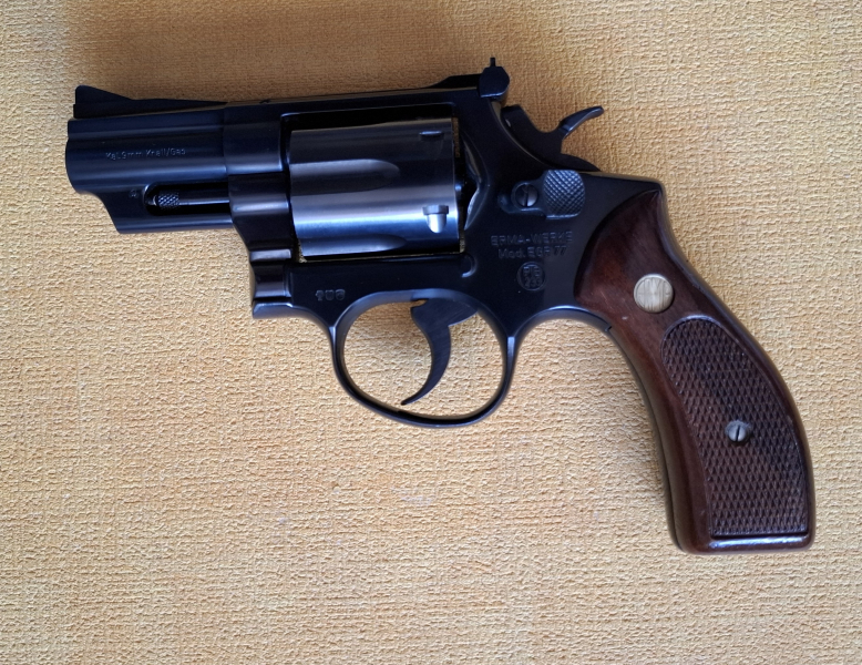 Über den Erma Revolver muss wohl nichts mehr geschrieben werden. Es sind schöne Erma Griffschalen verbaut. Mitiger Lauf und nicht wie bei PTB 601 wo der Lauf nicht zentrierter ist.