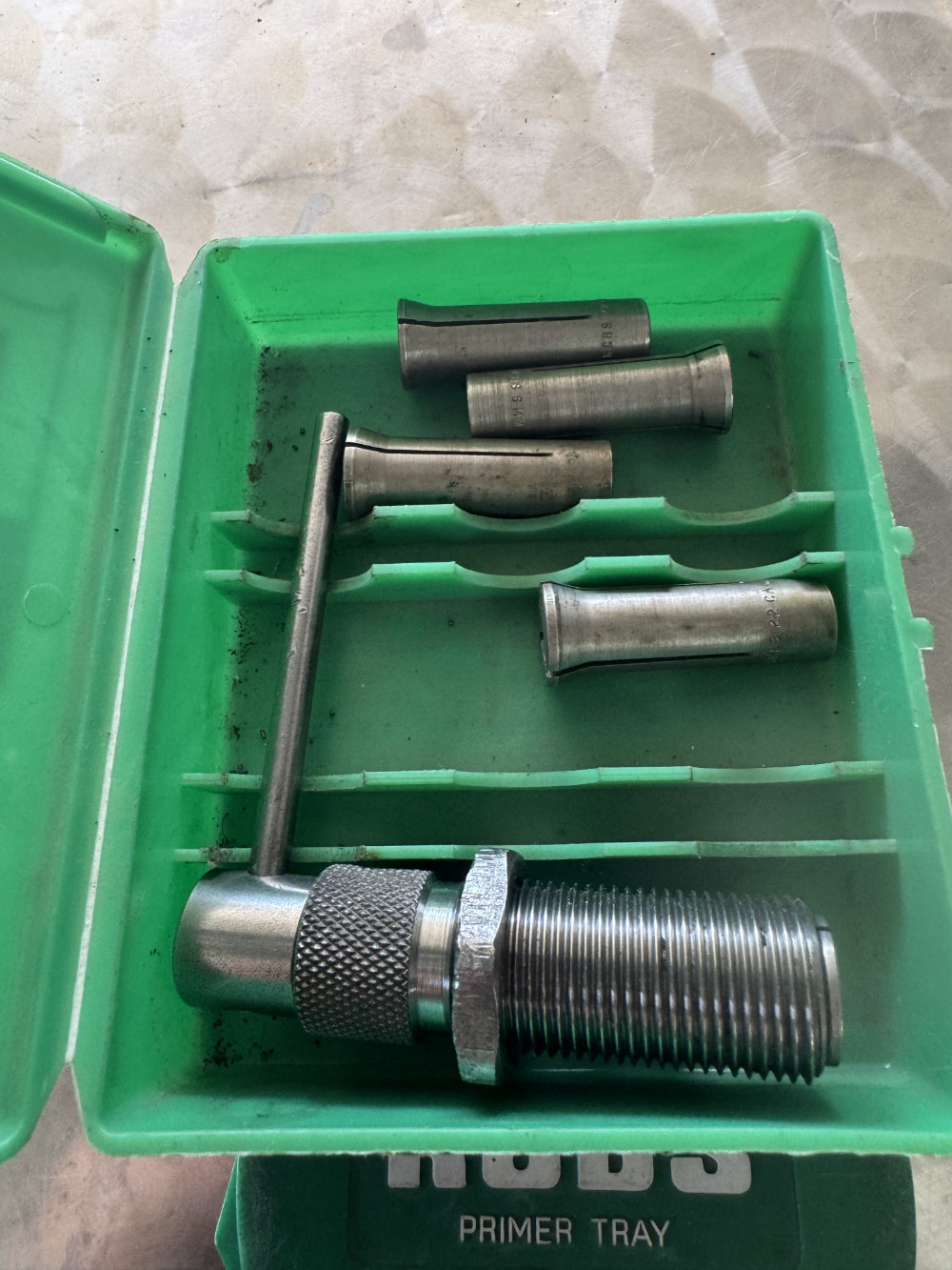 Zum Verkauf steht eine gebrauchte Bullet Puller (Geschosszieher) von RCBS mit .22 / 6mm / .308 Ziehern aus einem Nachlass.