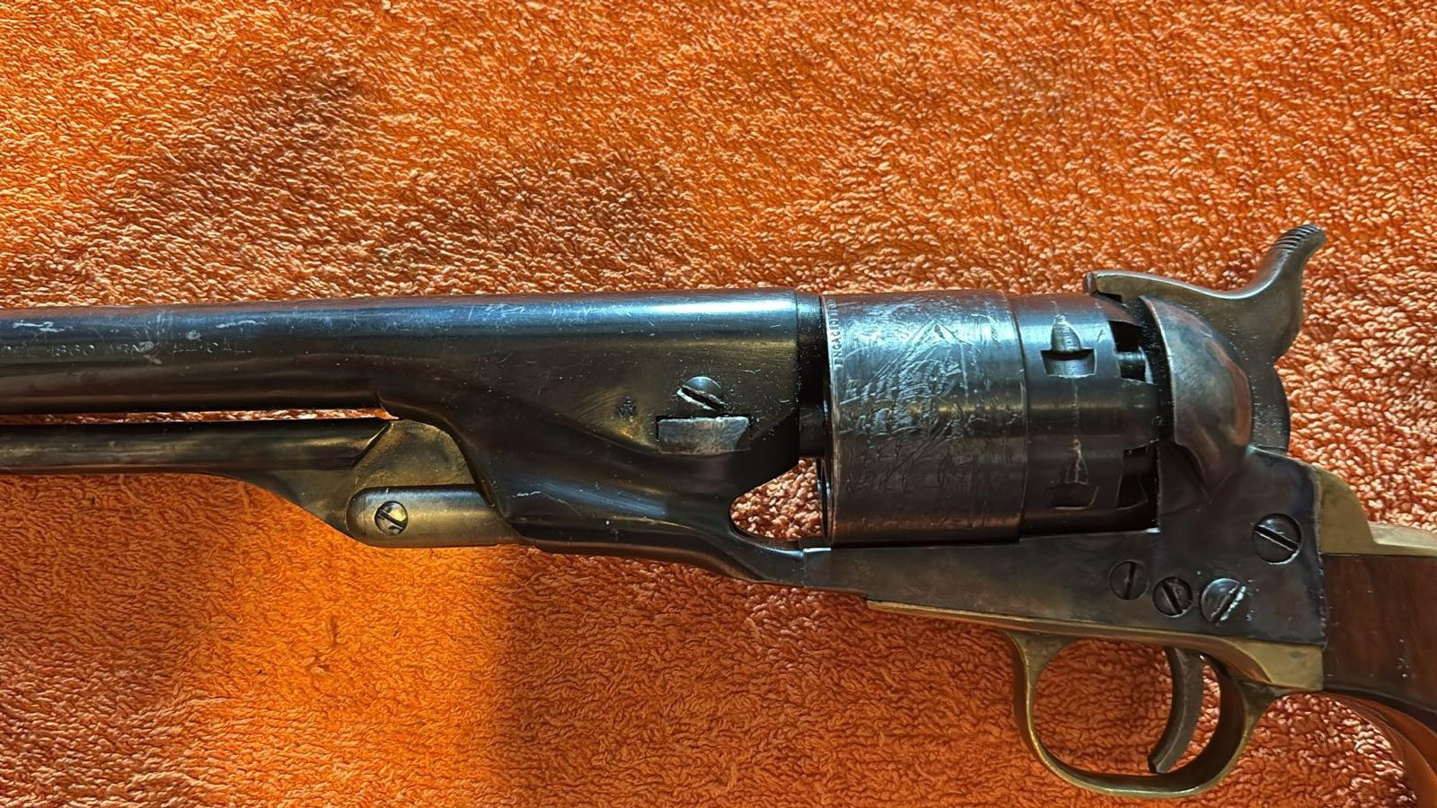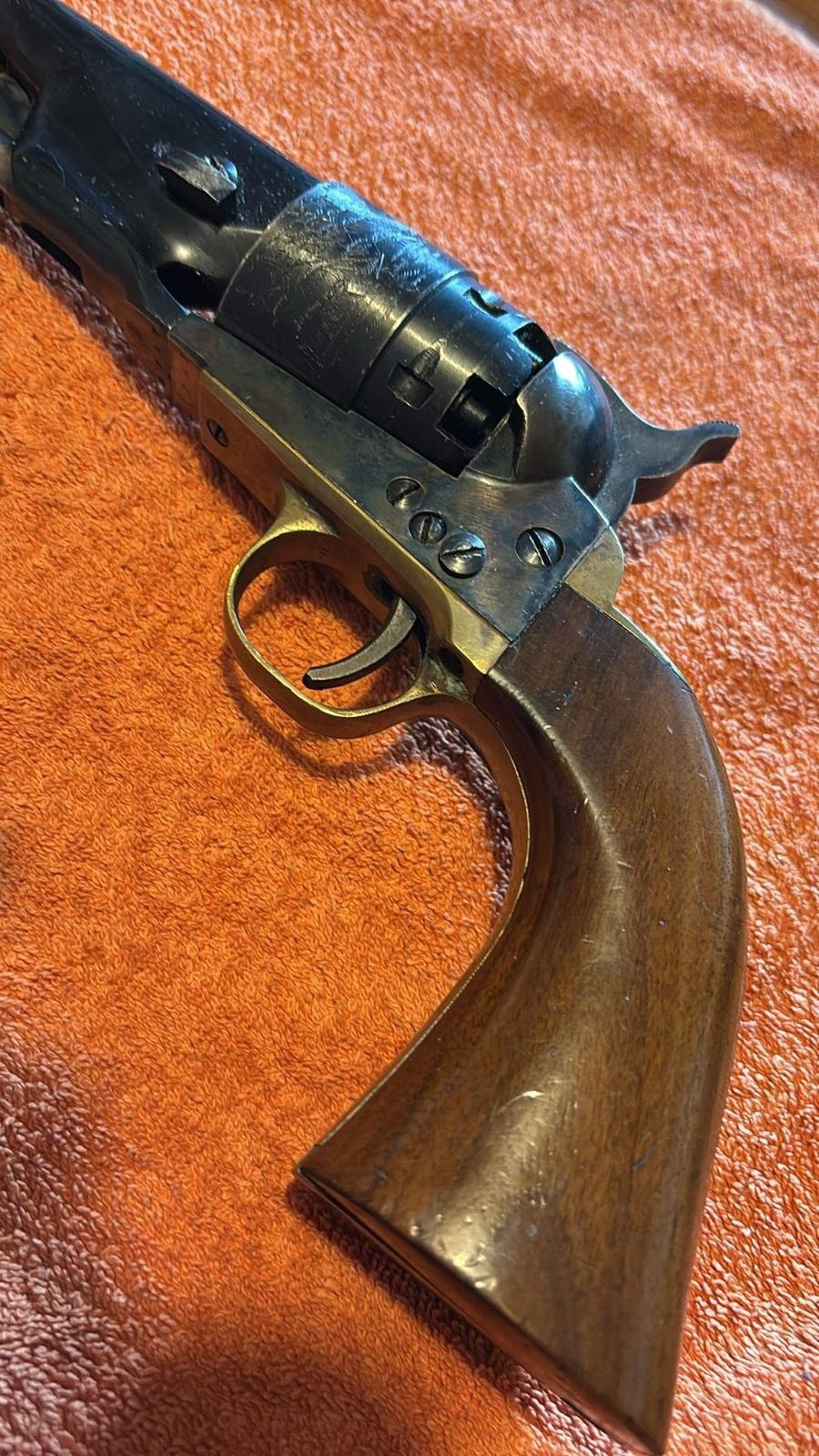 Dieser alte Vorderlader Revolver, Kaliber 44, lag über 40 Jahre im Tresor und es wurde nicht mit geschossen.