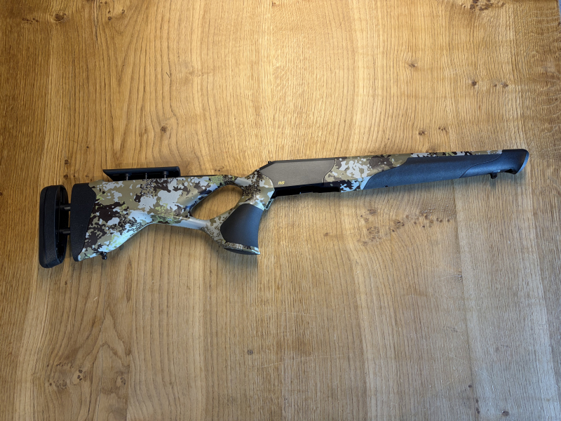 Zum Verkauf steht ein Blaser R8 Ultimate HunTec Camo Schaft/ System mit einer verstellbaren Schaftkappe und einem verstellbaren Schaftrücken.
