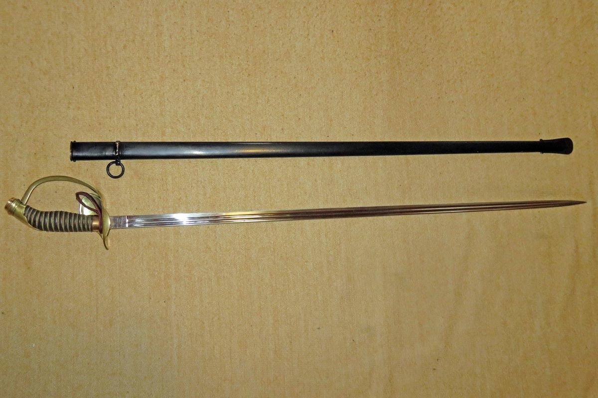 Der Degen ist in einem guten Zustand, wobei die Scheide nachlackiert wurde.