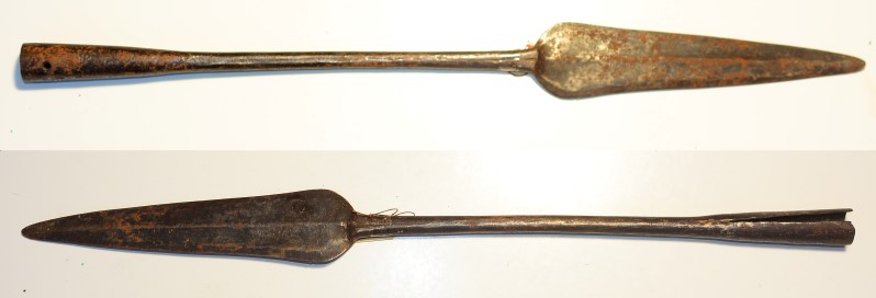 Afrikanische Speerspitze, Klinge 19cm, Länge mit Tülle 48 cm, braune Alterspatina, guter Zustand