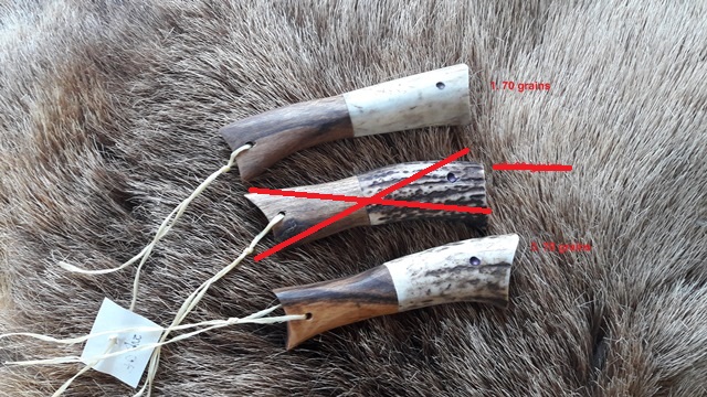 Vorderlader Pulvermessdose aus Hirschgeweih und Nussbaumholz, für 70 (Nr. 1. ), 60 (Nr. 2) und 70 (Nr. 3) grs. FFFg Schwarzpulver , nur für Schwarzpulver!!! Das Volumen kann auf ca. 50 grs erhöht werden Preis pro ein Stück, bitte auswahlen Nummer/ Longhunter Muzzleloader Black Powder Measure, handmade from deer antler and walnut wood, for 35 grs FFFg blackpowder . For Black Powder ONLY! The volume can be increased to approx. 50 grs. Price is for one set, choose one by number. Do not use smokeless powder in Your Muzzleloader! EU Versand/EU shipping: 6,00 €