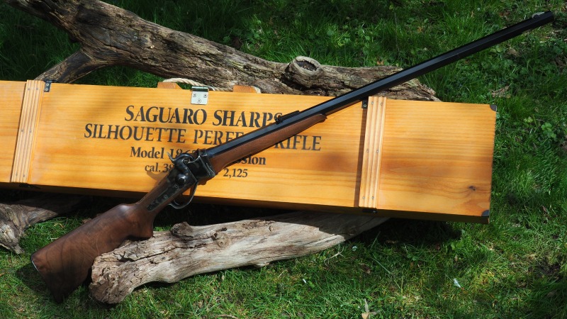 Die Firma Saguaro baut diese Waffen auf Basis der Pedersoli 1874 Sharps Silhouette als Patronenwaffe mit Perkussionszündung. Damit ist die Waffe frei ab 18 Jahre und bietet trotzdem alle Vorteile die ein Hinterlader für Metallpatronen hat.