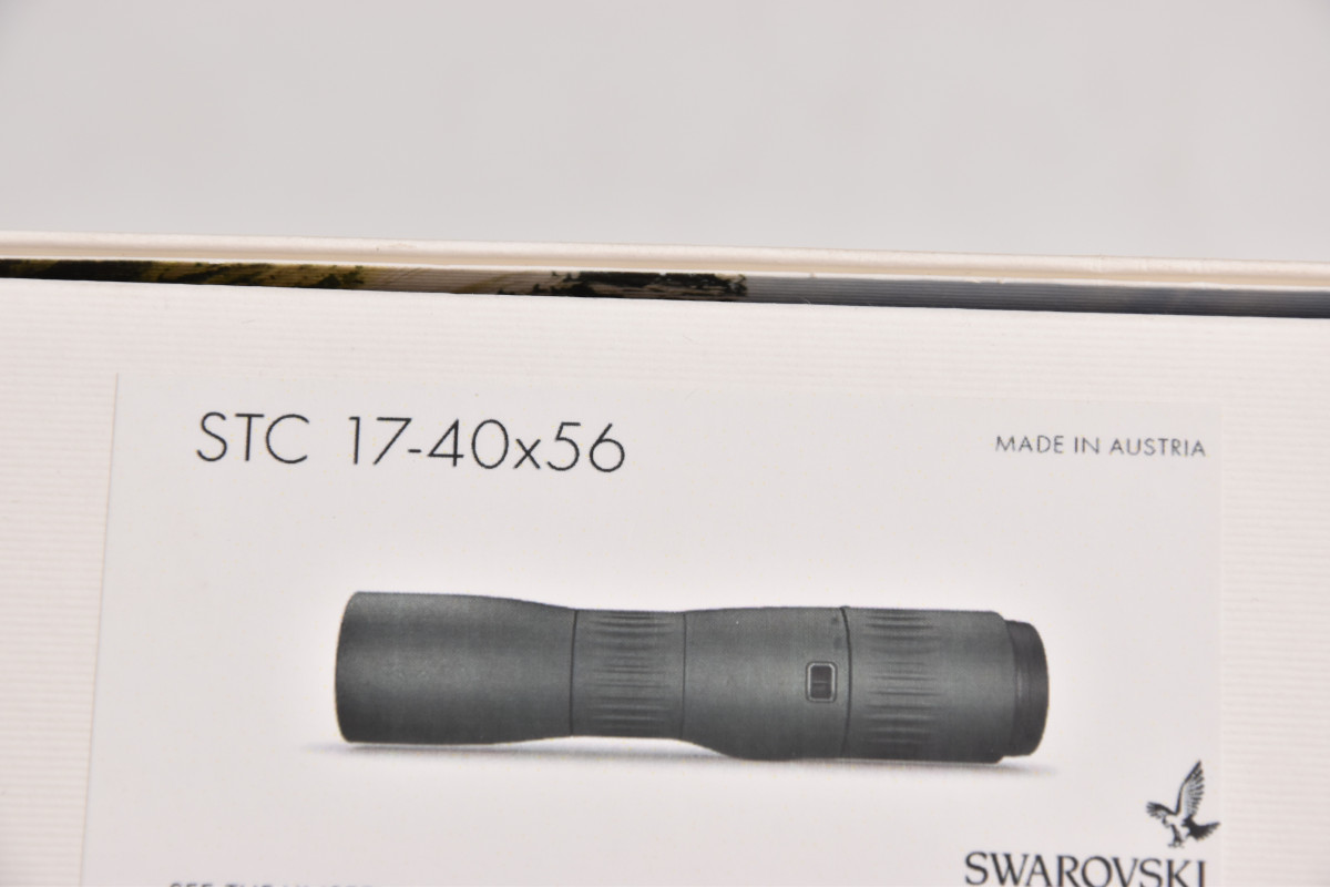 Sie bieten hier auf ein neuwertiges Spektiv des Marktführers Swarovski Optik, Modell STC 17-40x56. Hierbei handelt es sich um das hochwertige Kompaktspektiv aus dem aktuellen Swarovski-Programm, daß sich durch seine hervorragende optische Leistung bei minimalen Abmessungen auszeichnet. Durch den Geradeinblick und den großen Vergrößerungsbereich erleichtert es die schnelle Zielerfassung und auch ein Beobachten aus der freien Hand. Das Spektiv wurde vom Vorbesitzer nie benutzt, der Kauf war ein typischer Fall von „Haben Wollen“, daher befindet es sich in einem absolut neuwertigen, unbenutzten Zustand. Der aktuelle Neupreis beträgt 2.590,- €.