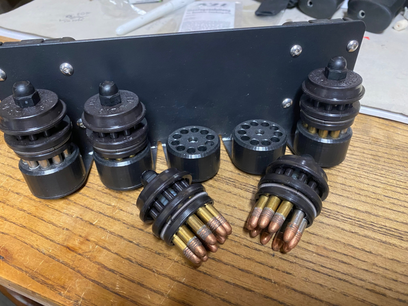 Verkaufe einen Speedloader Halter mit 2 Teclocks auf der Rückseite zum anbringen an den Gürtel + 5 Speedloader 10 Schuss .22lr Zustand für den S&W Revolver 617 mit 10 Schuss Trommel, gebraucht mit minimalen Gebrauchspuren und einwandfreie Funktion.