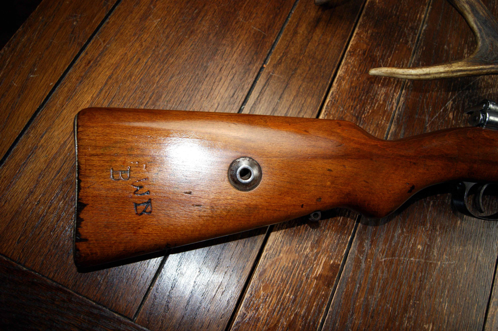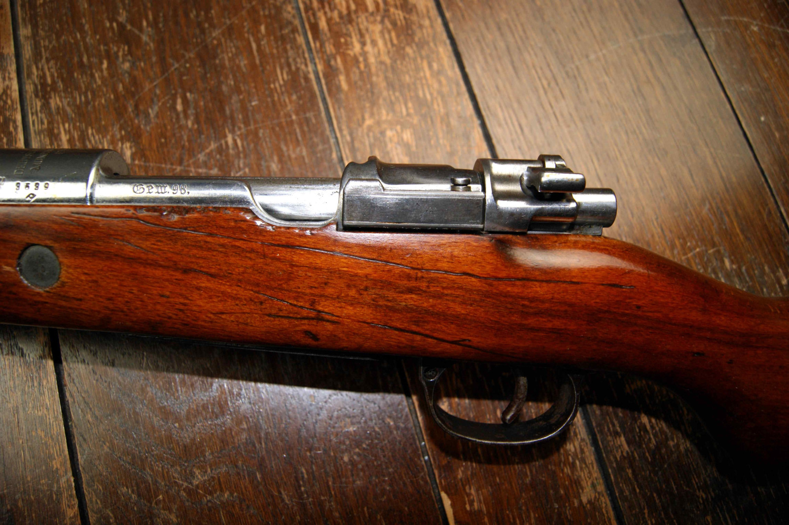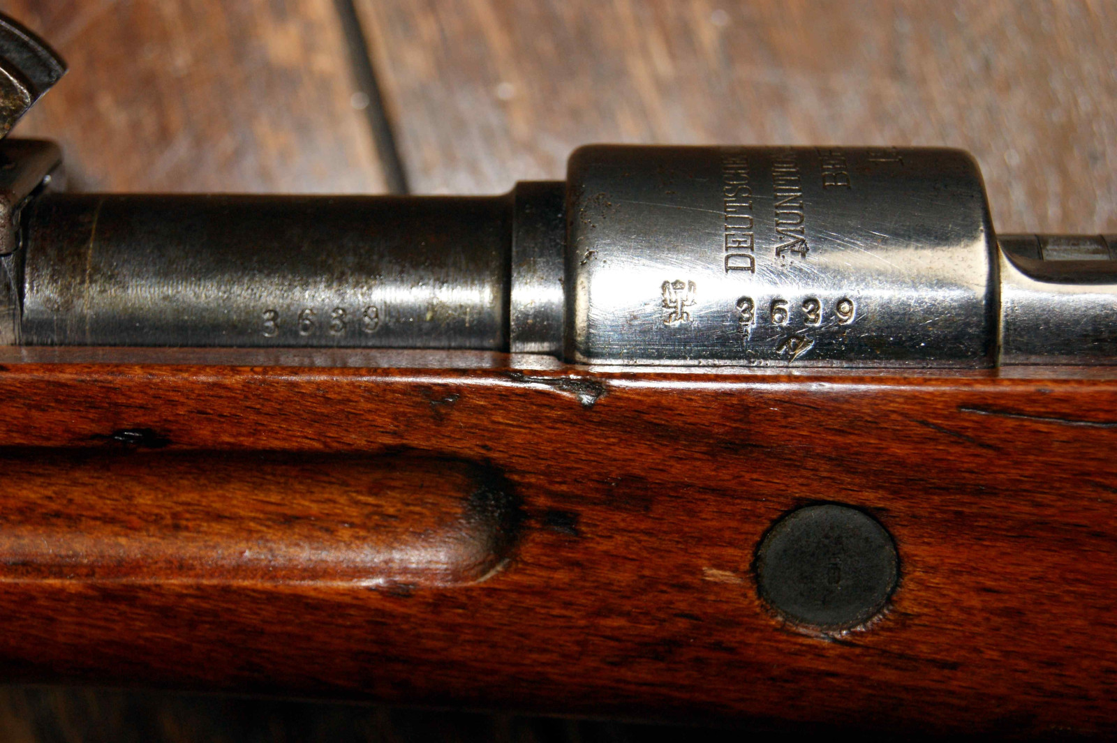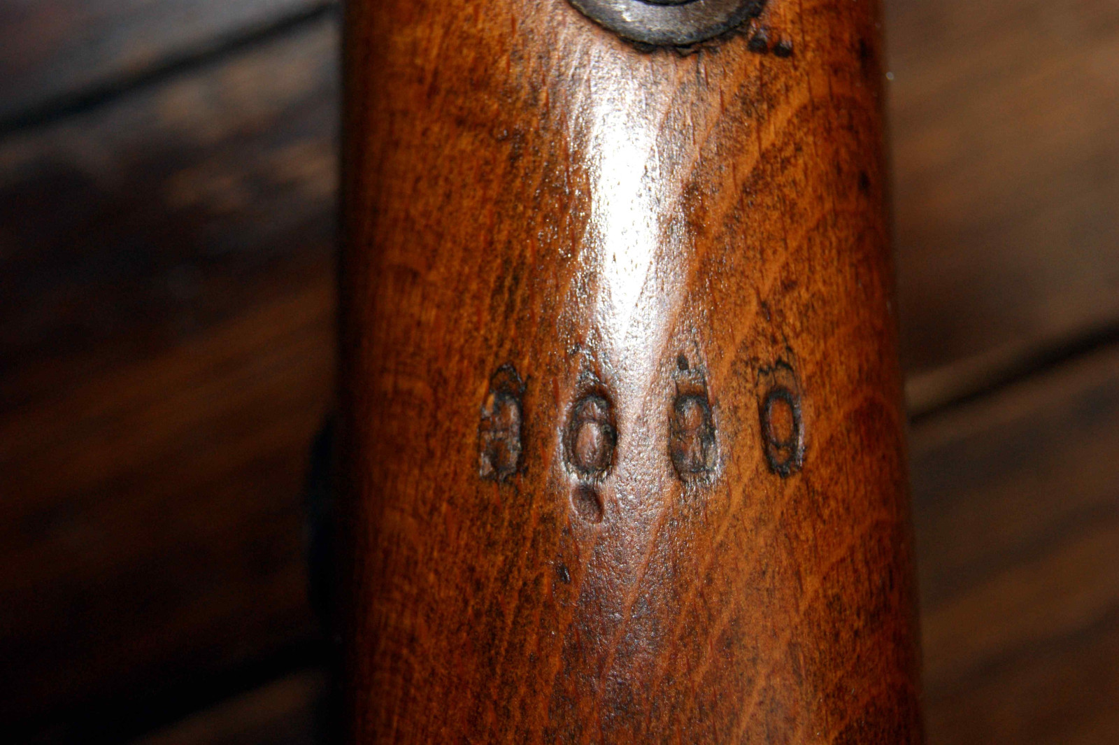 Zum Verkauf kommt ein Nummerngleiches Gewehr 98 von DWM 1916, alles Nummerngleich bis auf die Kammer und Auszieher - diese ohne Nummer ? Vielleicht seht dies im Zusammenhang damit weil sich das Schloss wenn es gespannt ist nicht sichern läßt. Auch die Schaftstemplung erscheint seltsam ( BWB anstatt EWB ) ? Das Kaliber ist 8x57JS, der lauf hat ein kantiges Zug-Feldprofil ist aber rau, da die Waffe keinen Beschuss hat verkaufen sie wir nur an Waffenhändler, Sammler oder zum Export.