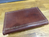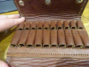 sehr gut erhaltene Patronentasche aus braunem kräftigem Rindsleder mit je 10 Schlaufen für Kurzwaffen und Langwaffenmuntion, handgenäht, 18x12 cm, ein bißchen Luxus mit 3 Druckknöpfen, siehe Foto und mein egun