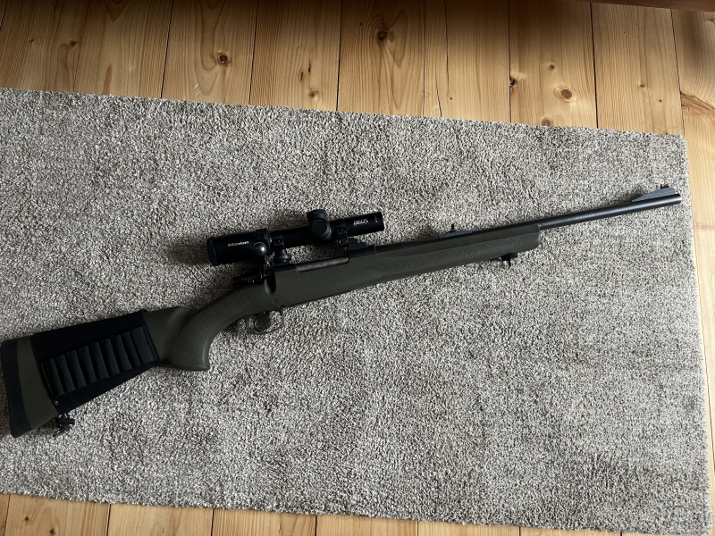 Biete einen Repetierer im Kaliber 8x57 IS mit Kunststoffschaft an.