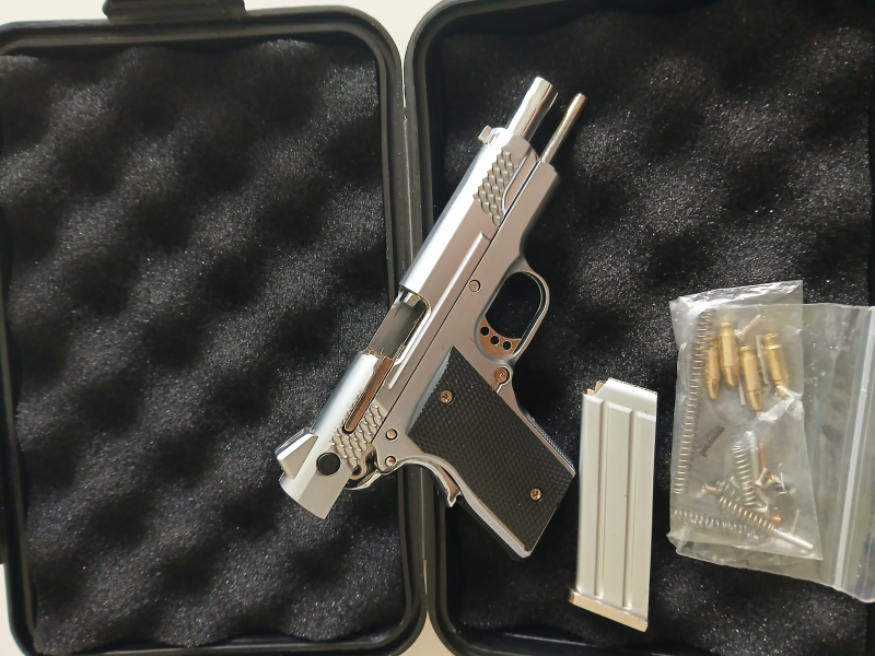 Es handelt sich um einer Miniatur einer Smith and Wesson 945. Quasi eine 1911 auf Steroiden.