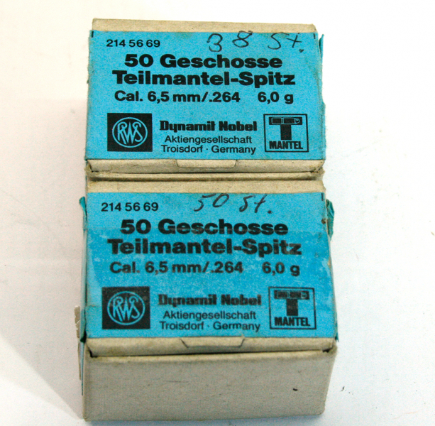 RARITÄT ca. 88 Stück RWS GESCHOSSE 6,5MM .264 6,0g TMS Teilmantel-Spitz 92gr JAGD SP 6,5x CAL 264