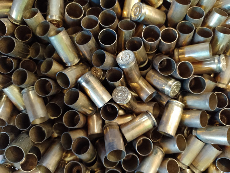 Die Hülsen wurden noch nie wiedergeladen und sind so wie sie aus der Waffe kommen, verschossen auf einem Indoorstand.