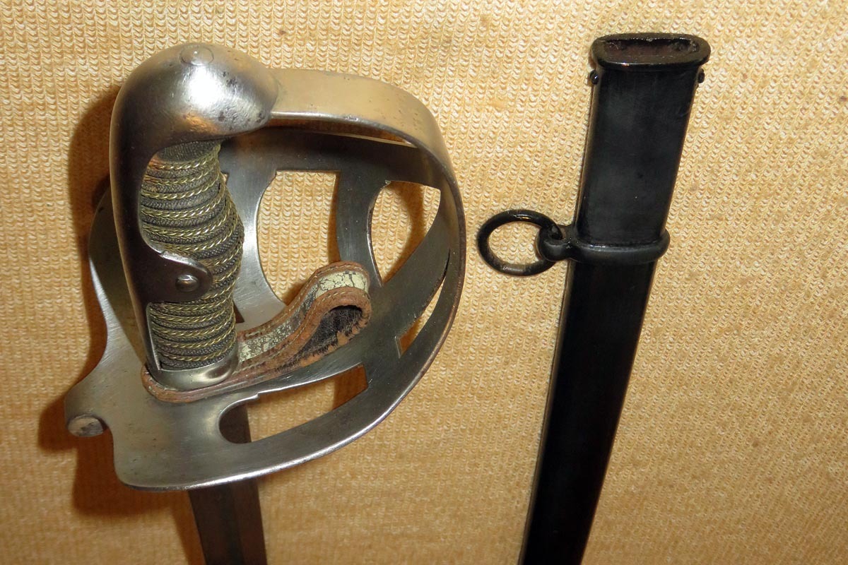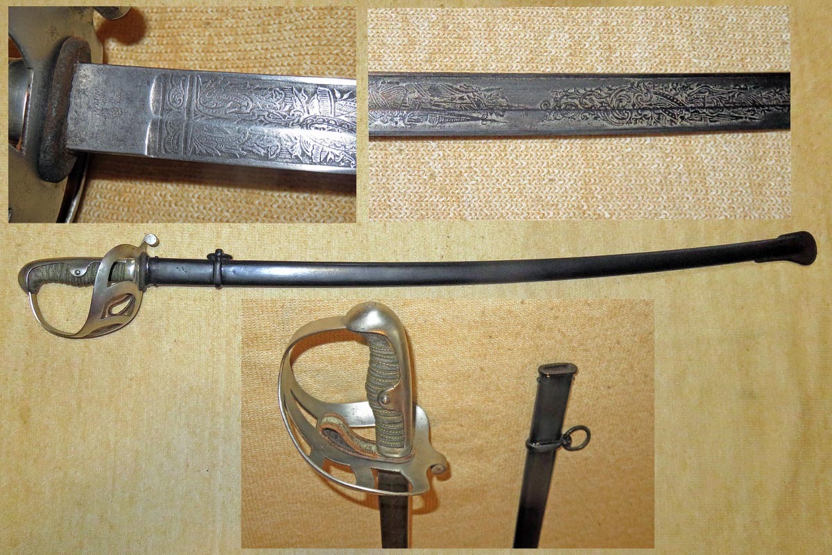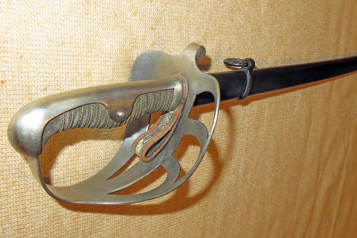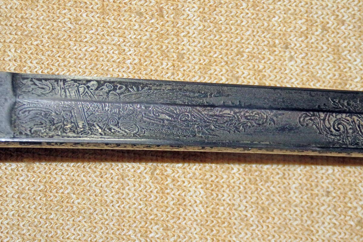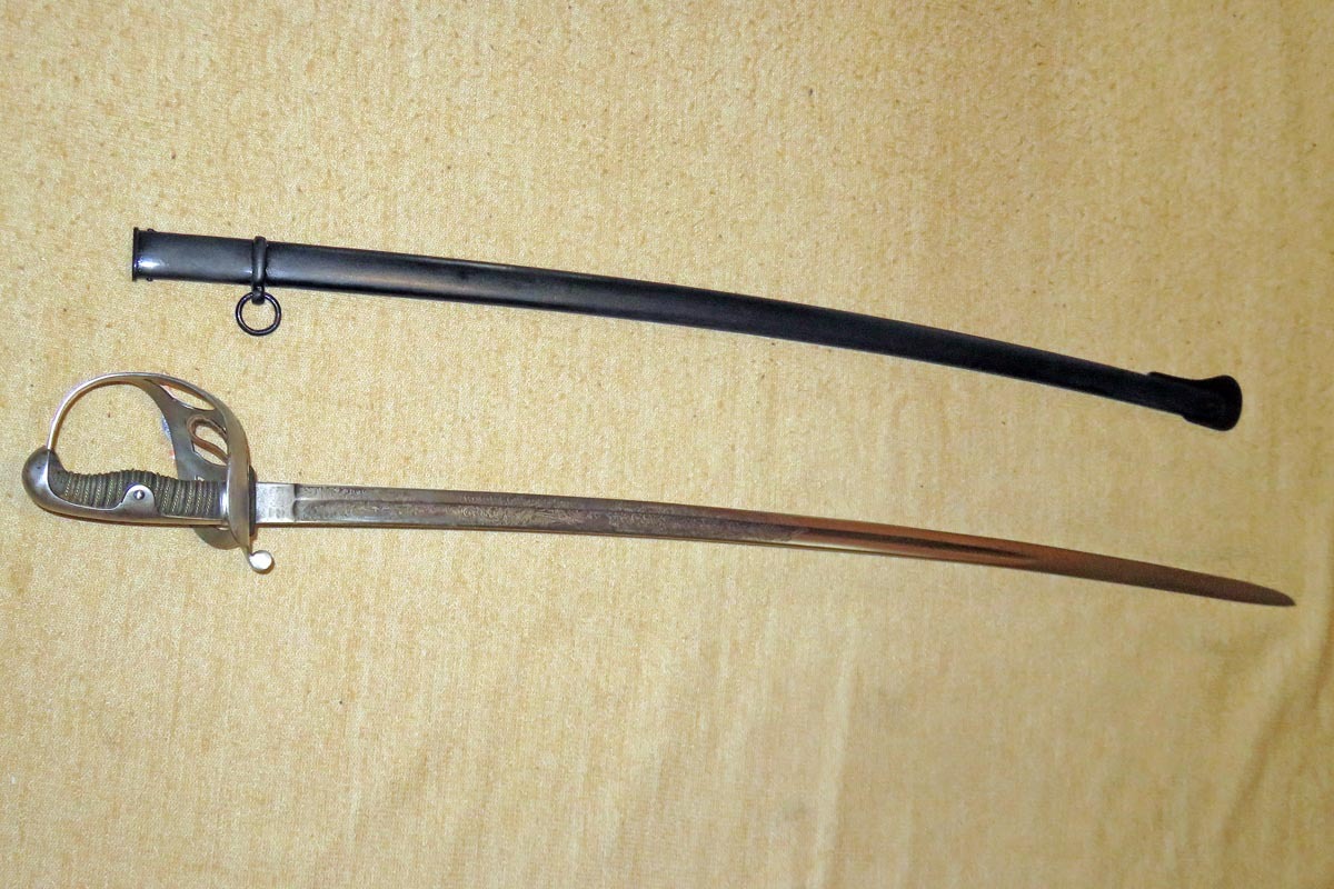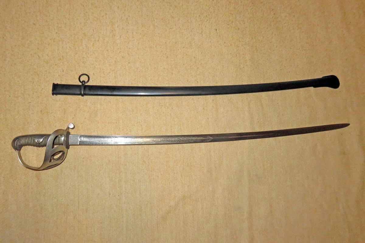 Bei diesem Säbel der preußischen Kavallerie ist die Klinge beidseitig geätzt und mit der Klingenmarke „WKC“ versehen.