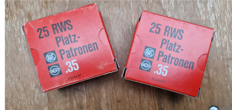.35 RWS PLATZPATRONEN - in roter Papschachtel - SELTEN - Wird seit langem nicht mehr hergest